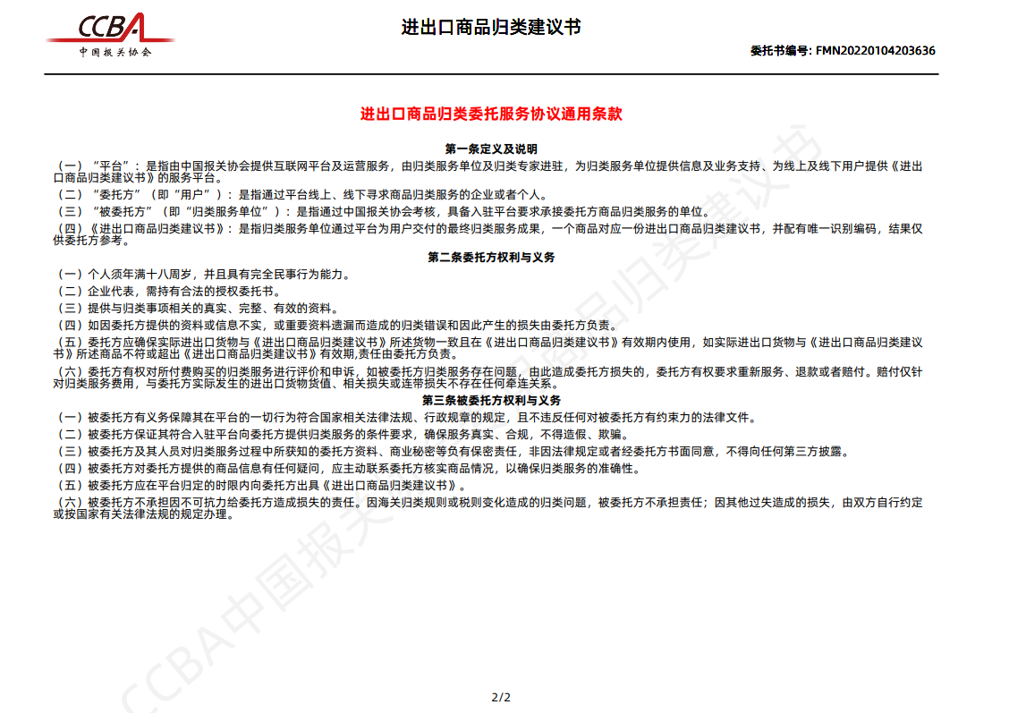 1、提供报关协会专家的归类服务,出具纸质版归类意见书,上传平台备案。